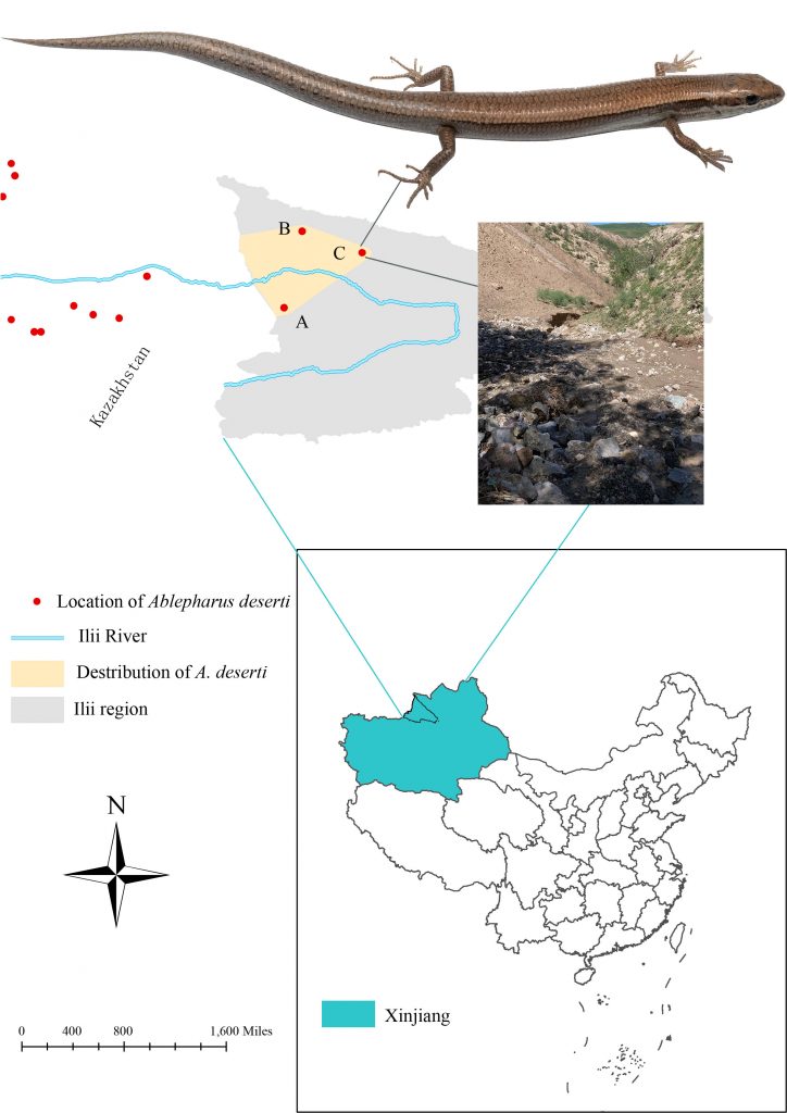 文献来源: Liang T, Wang P, Wu KF, An J & Shi L. 2022. Rediscovery of Ablepharus deserti Strauch, 1868 (Reptilia: Scincidae) from the northwest of China, including a northeastward range extension for this species. Herpetology Notes.