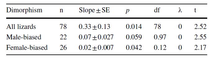 为研究中国蜥蜴类体型大小的两性异性及其移速增长的模式(Rensch法则),收集了中国境内分布的蜥蜴的体型大小数据,共包含176个物种。同时,也收集了蜥蜴的繁殖数据(窝卵数大小,CS,78个物种)。研究发现:
