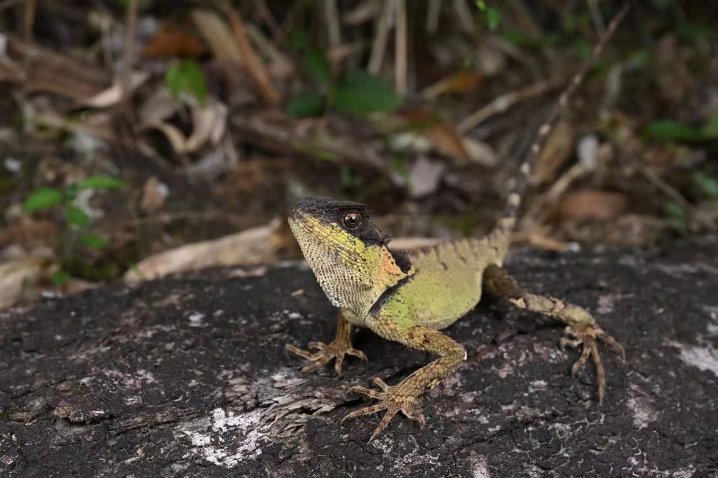 | 鉴别特征 Description | 眼后棘不发达,体鳞大小不一,间杂有大棱鳞;颈鬣发达,与背鳞不连续。后肢贴体前伸达吻眼之间,尾背有黑褐色横斑。 | ||